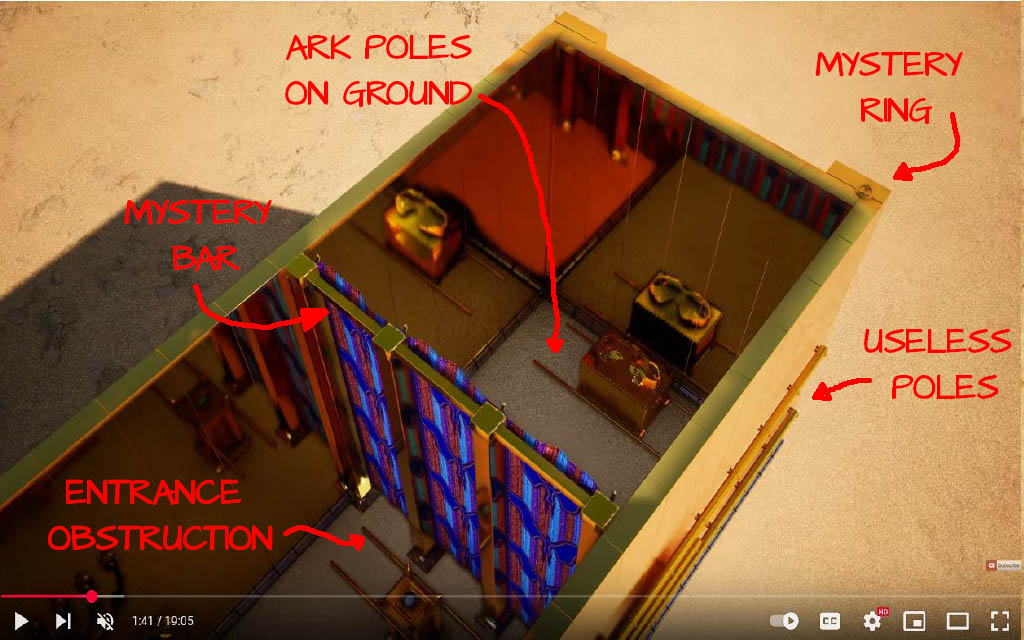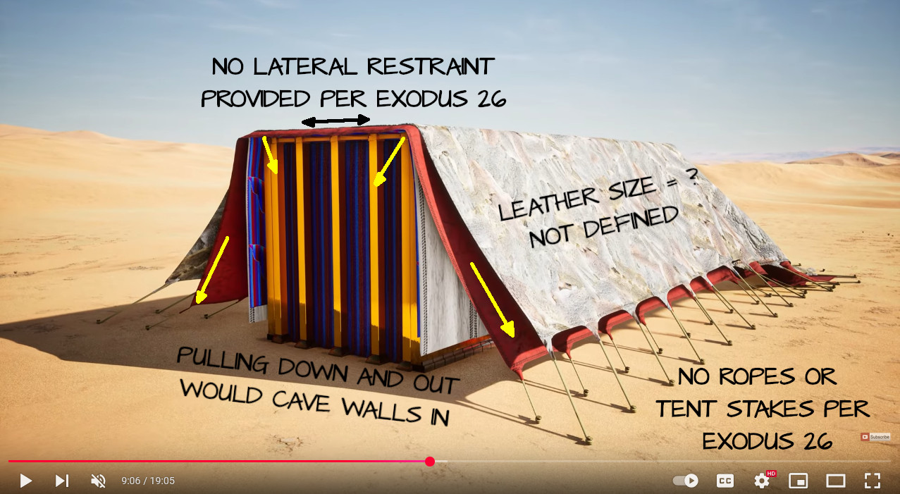 Throughout the 119 ministries video, 119 ministries claims to speak from authority on the Tabernacle subject matter, implying they have subject matter expertise in the areas of Hebrew language, engineering and/or construction, and the Tabernacle design and texts themselves. The Timna build is not an example of a biblically compliant model (even the white linen cherub curtain should give that fact away), and the Bible Scenes model is not physically or structurally viable or fully biblically compliant either as depicted.