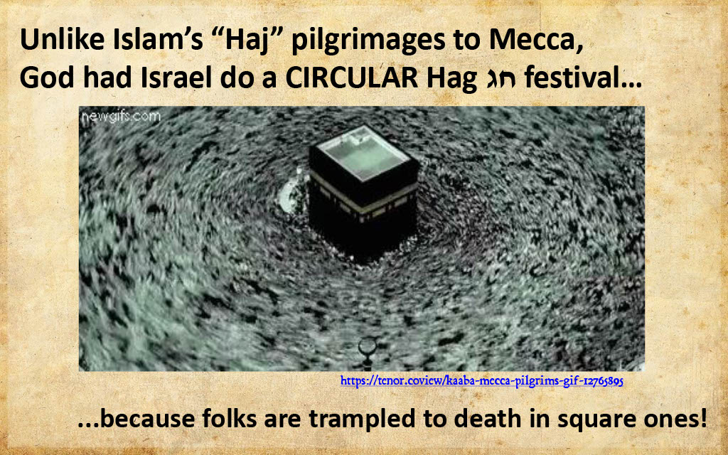Images are included below so readers can look up the references and ponder the historical ramifications and the cultural re/mis appropriation as the Hebrew slaves would make a round חוג wilderness Tabernacle for circular procession feasts that would be referred to in the singular as חג.