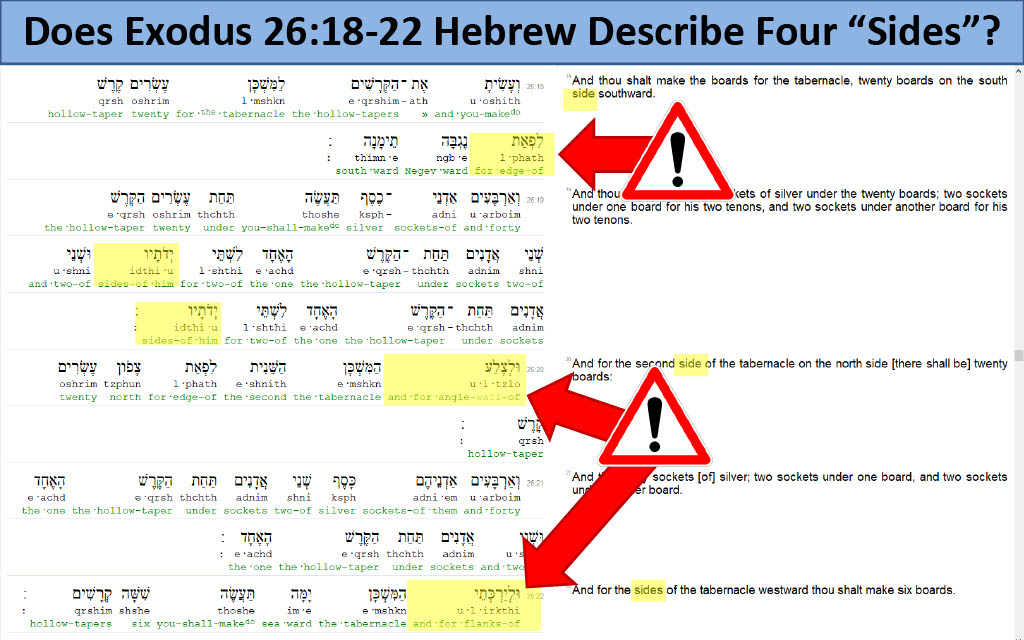 Question 19 (@2:07) -- Why does 119 ministries make no distinctions between these different Hebrew words that don't mean "side", and when there are only two or maybe three "sides" to this would-be rectangle, with so-called "sides" going by different names?