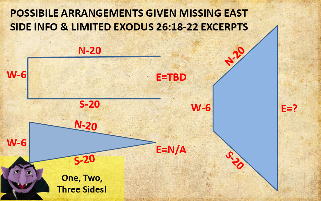 Question 25 (@3:12) -- How can 119 ministries be defining a Tabernacle shape so dogmatically at this point with absolute certainty while having only two dimensions for the courtyard, and only two or three possible "sides" identified on the Tabernacle itself, especially given the fourth (extra 50 width) dimension listed in Exodus 27:18??