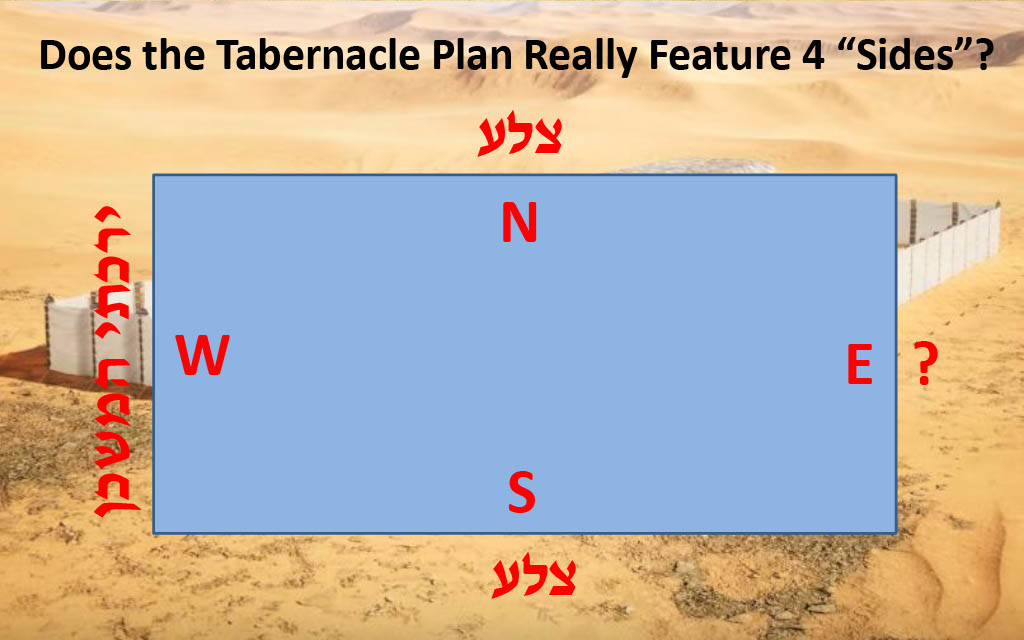 No information is given in Exodus that describes the walls as straight sides. Actually, the opposite proves to be true (e.g., Exodus 27:17). Compass bearings of north, south, east, and west are ultimately relative to their opposite direction. Bearings off of due north or south are still north or south bearings or orientations. The same could be said of "sides", especially if the sides are comprised of semicircles, as Exodus 27:9-18 describes.