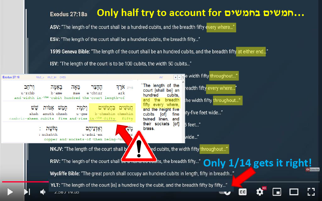 Question 22 (@2:56) -- As Hebrew experts, why does 119 ministries fail to address the fact that 13 of 14 translations omit any quantitative reference to the second "50" in Hebrew?