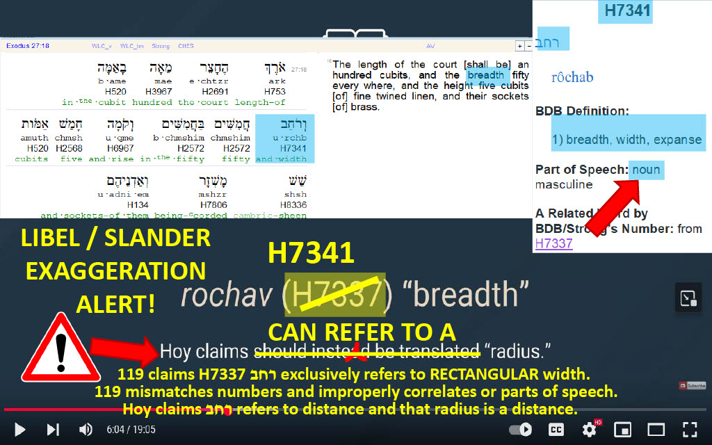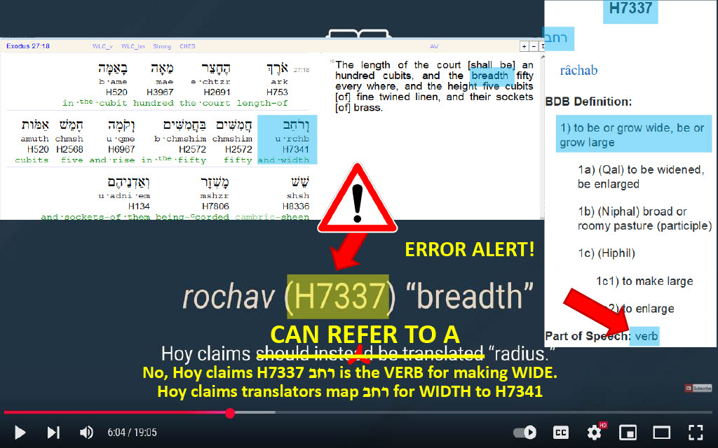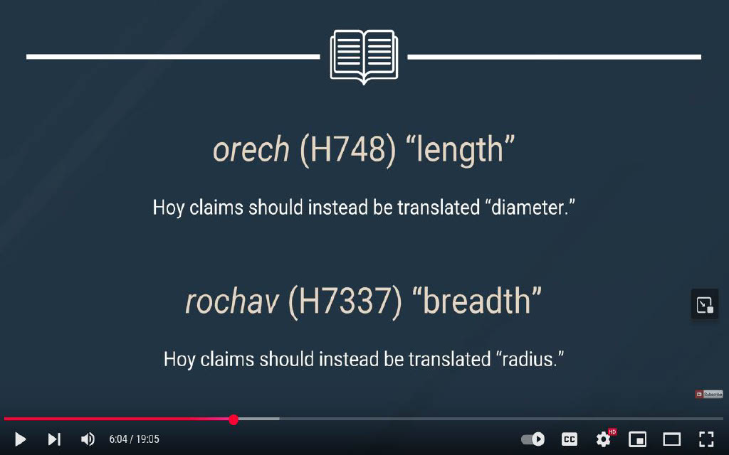 Question 37 (@5:56) -- Why doesn't 119 ministries pretend that Hoy is also purporting that all occurrences of ארך be translated as circumference as the length / circumference interrelationship is mentioned?
