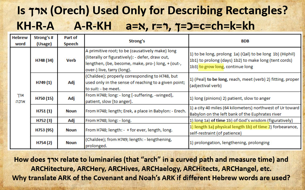 Question 34 (@5:56) -- Why does 119 ministries cite Strong's number (H748) for ארך "length" (orech) when it's not found in Exodus 26 or 27?