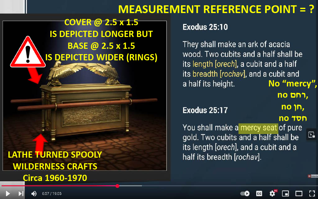 There are numerous cases within 119's CGI model that do not conform to quantities as identified in Exodus. Claims made to the Tabernacle being "a rectangle" are as absurd as the "Tabernacle a Circle" title as the rectangle again is a mere 2D plane shape bound by 2 sets of 4 parallel liens. If a Hebrew teacher cannot count to four, it stands to reason that his command over other subjects, like Bible history, ancient construction, or exegesis would be suspect.
